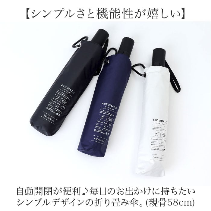 ・自動開閉が便利♪毎日のお出かけに持ちたいシンプルデザインの折り畳み傘。(親骨58cm)