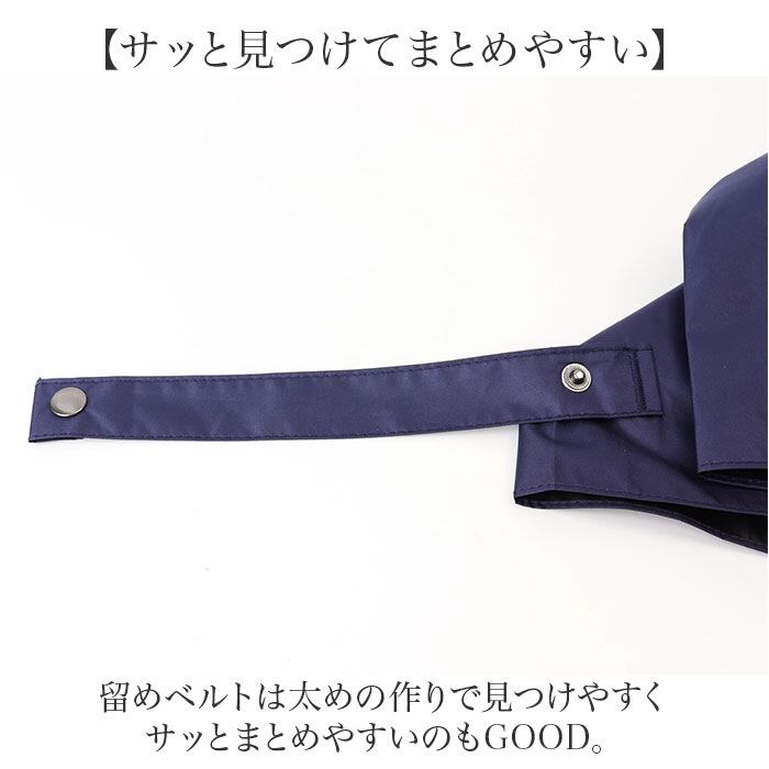 ・濡れた傘生地をしっかり留めるスナップボタン仕様。