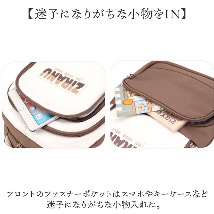 ・フロントのファスナーポケットはスマホやキーケースなど迷子になりがちな小物入れに。