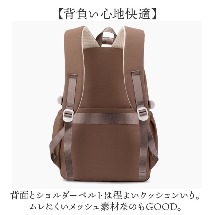 ・背面とショルダーベルトは程よいクッションいり。ムレにくいメッシュ素材なのもGOOD。