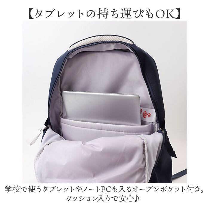 ・学校で使うタブレットやノートPCも入るオープンポケット付き。クッション入りで安心♪