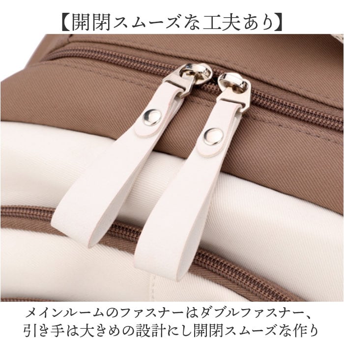・メインルームのファスナーはダブルファスナー、引き手は大きめの設計にし開閉スムーズな作り