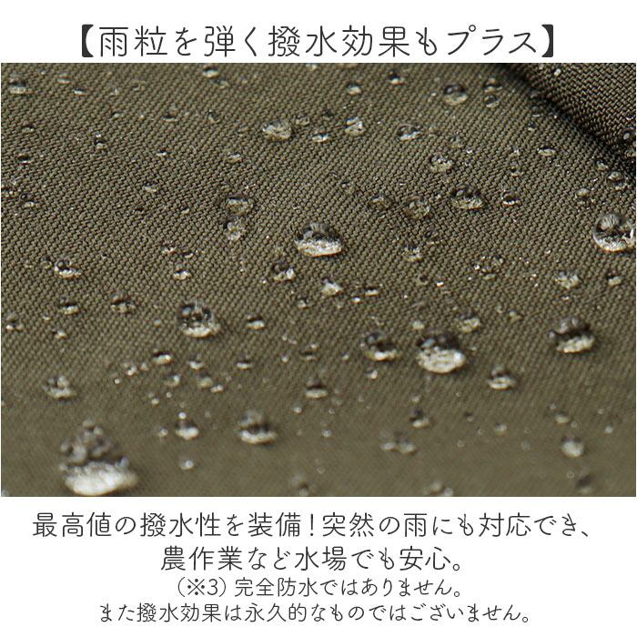 ・最高値の撥水性を装備!突然の雨にも対応でき、農作業など水場でも安心。