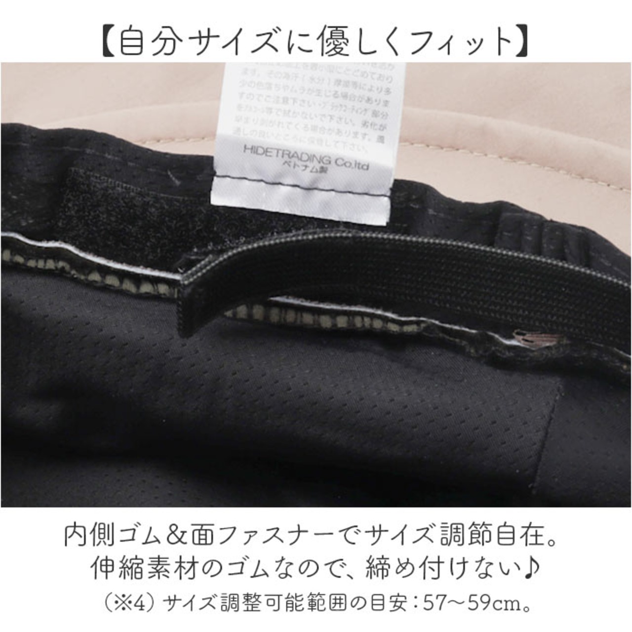 (※4)サイズ調整可能範囲の目安:57〜59cm。