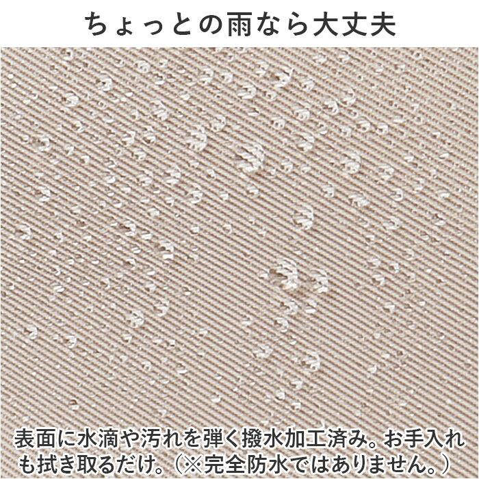 ・表面に水滴や汚れを弾く撥水加工済み。お手入れも拭き取るだけ。(※完全防水ではありません。)