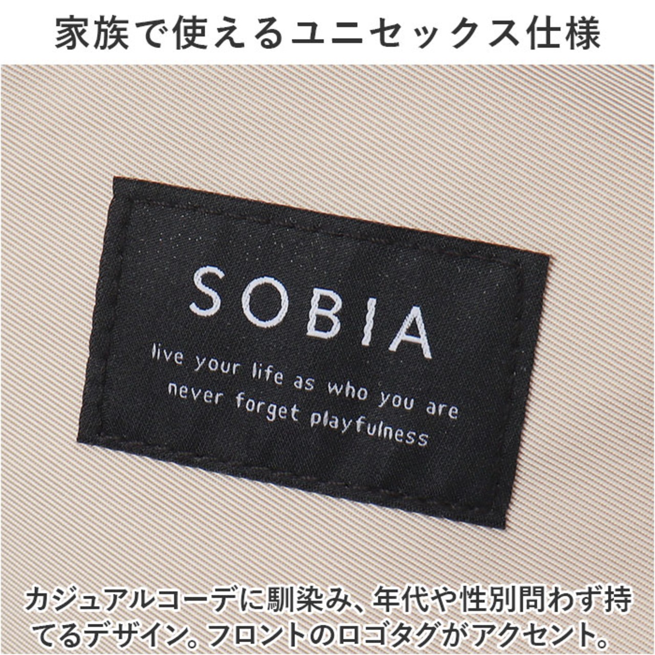 ・カジュアルコーデに馴染み、年代や性別問わず持てるデザイン。フロントのロゴタグがアクセント。