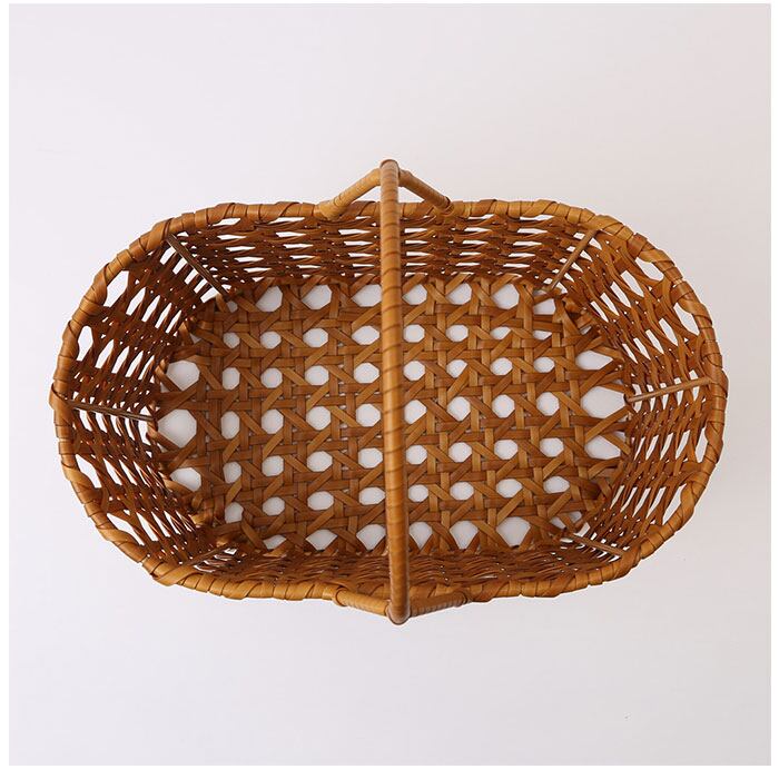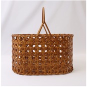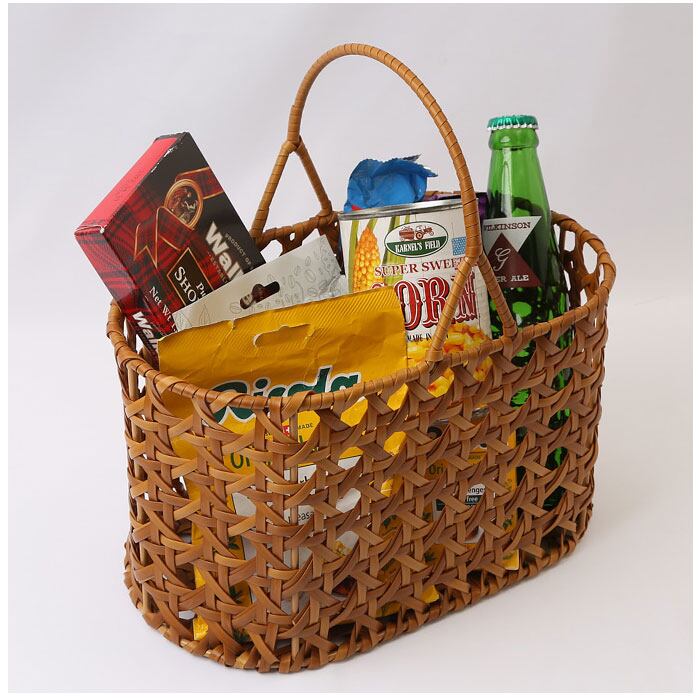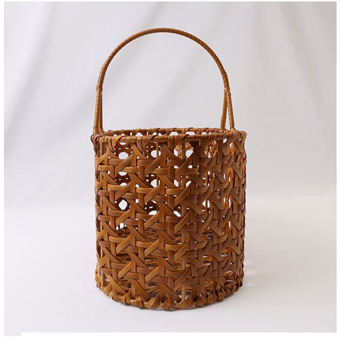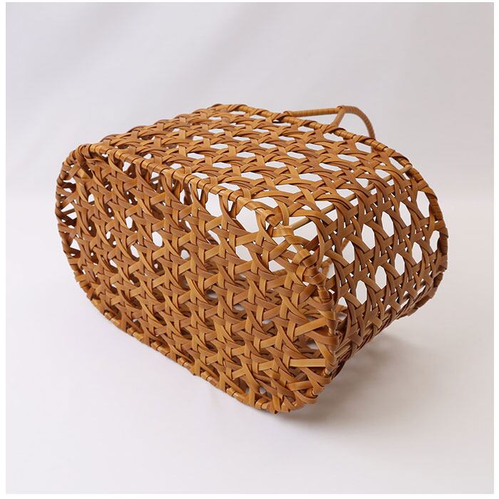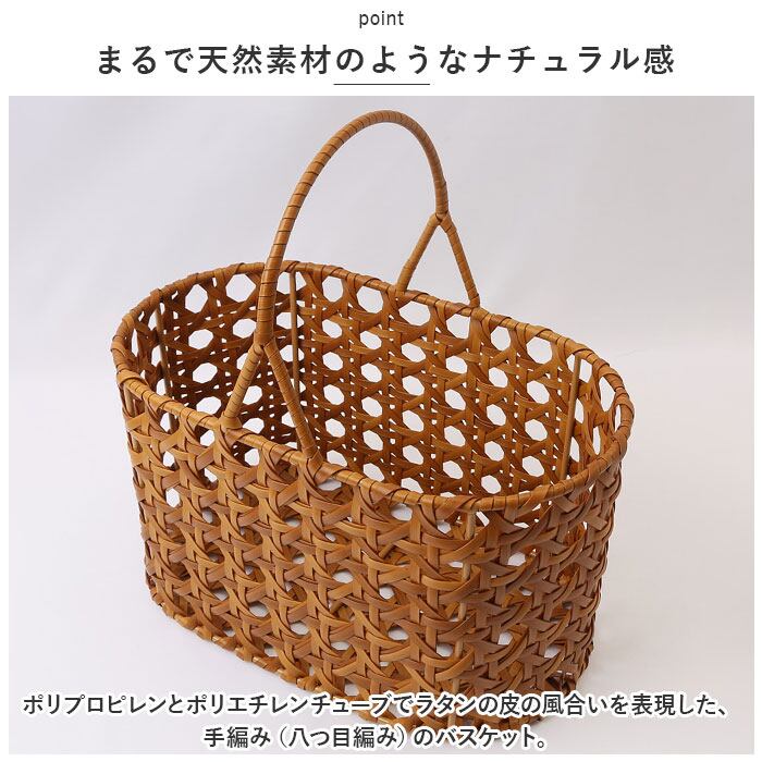 ・ポリプロピレンとポリエチレンチューブでラタンの皮の風合いを表現した、手編み(八つ目編み)のバスケット。