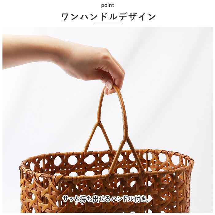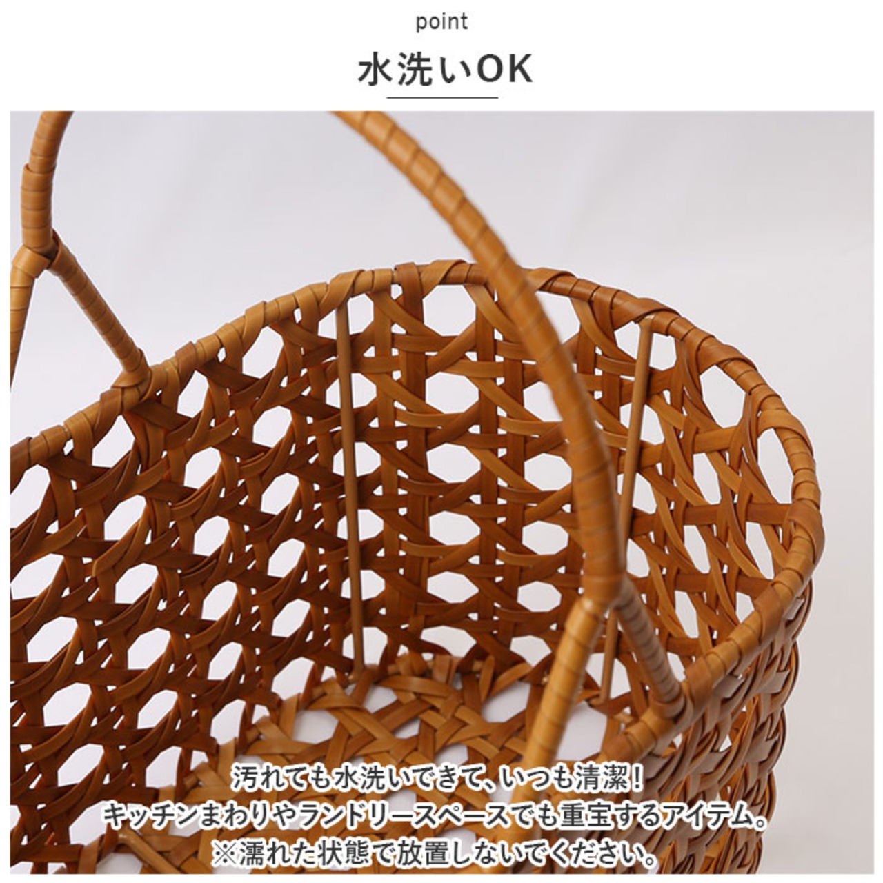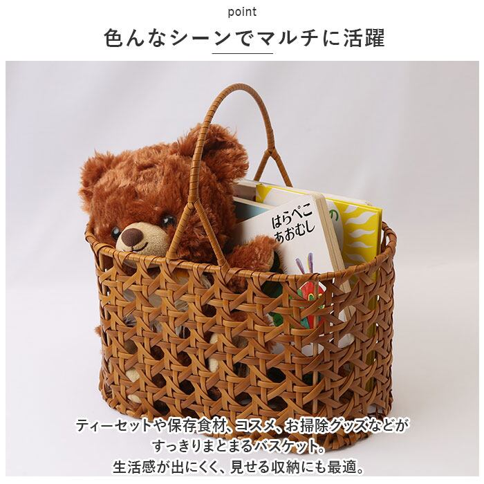 ・ティーセットや保存食材、コスメ、お掃除グッズなどがすっきりまとまるバスケット。生活感が出にくく、見せる収納にも最適。