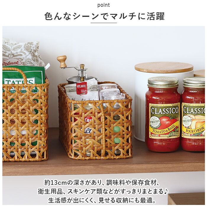 ・約13cmの深さがあり、調味料や保存食材、衛生用品、スキンケア類などがすっきりまとまる♪生活感が出にくく、見せる収納にも最適。