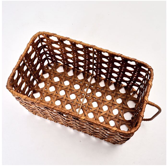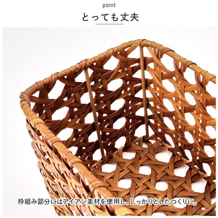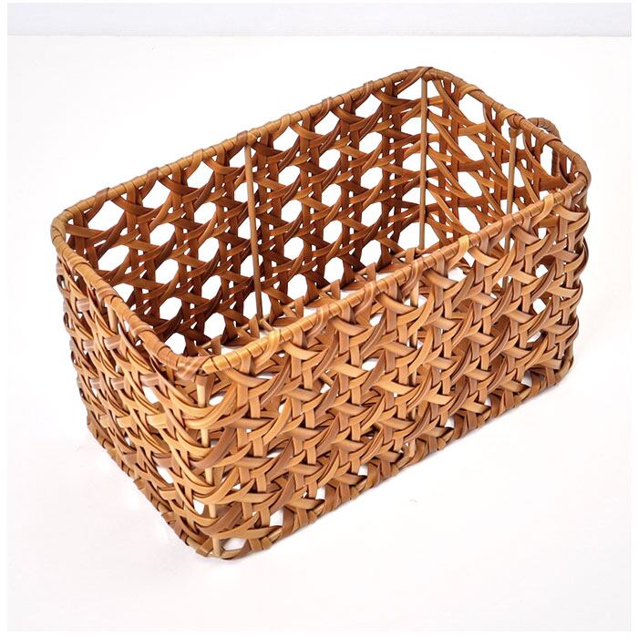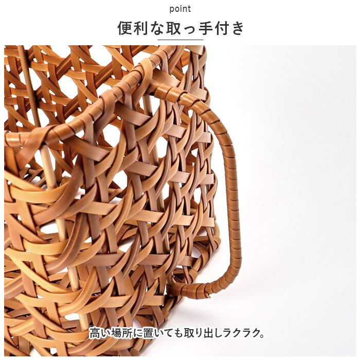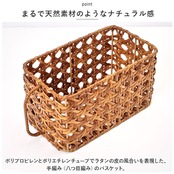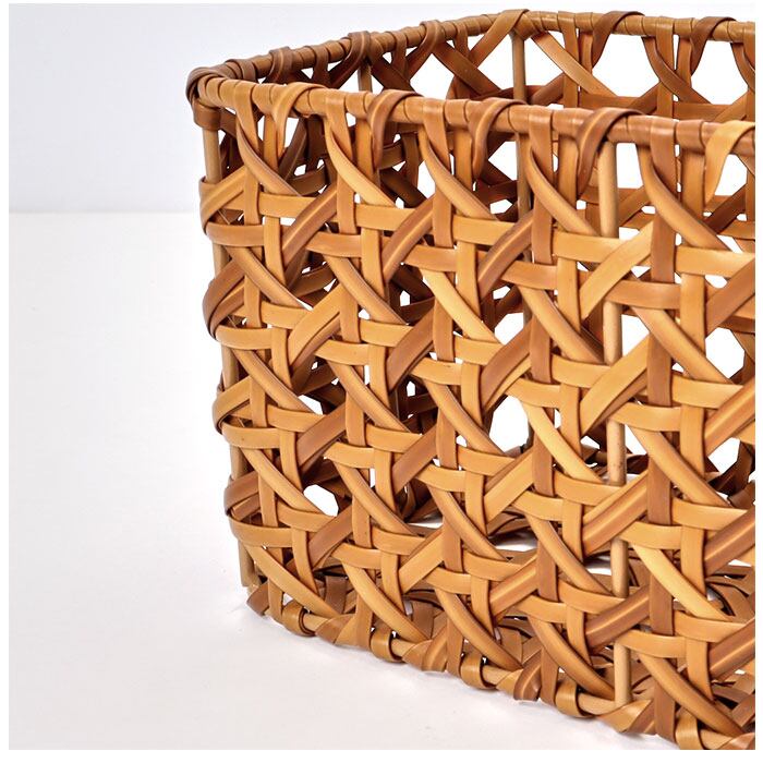 ・ポリプロピレンとポリエチレンチューブでラタンの皮の風合いを表現した、手編み(八つ目編み)のバスケット。