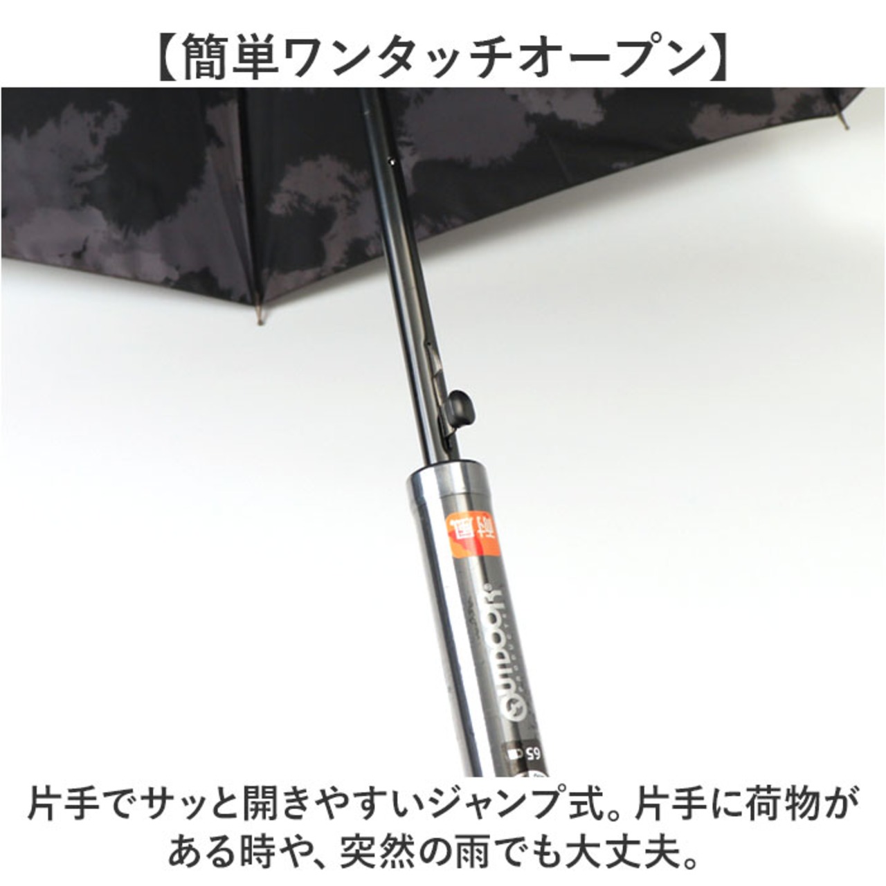 ・片手でサッと開きやすいジャンプ式。片手に荷物がある時や、突然の雨でも大丈夫。