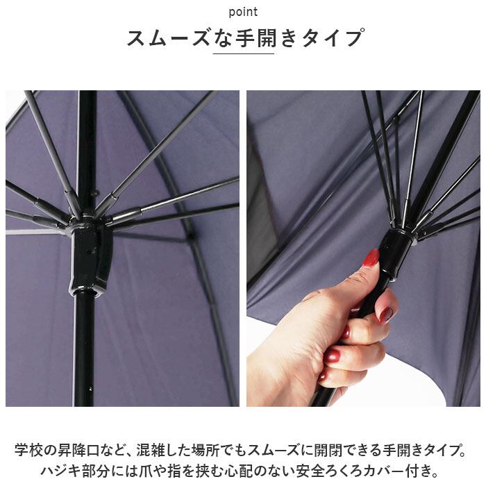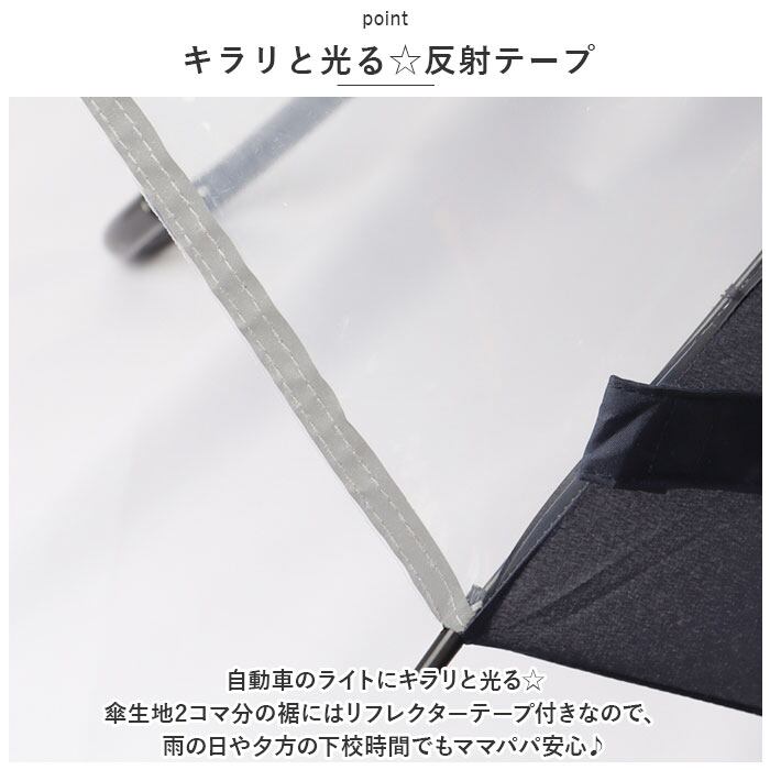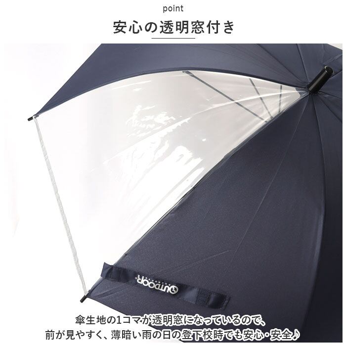 ・傘生地の1コマが透明窓になっているので、前が見やすく、薄暗い雨の日の登下校時でも安心・安全♪