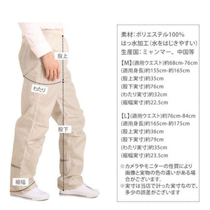 ・レインパンツ:ポリエステル100% ※はっ水(水をはじきやすい)