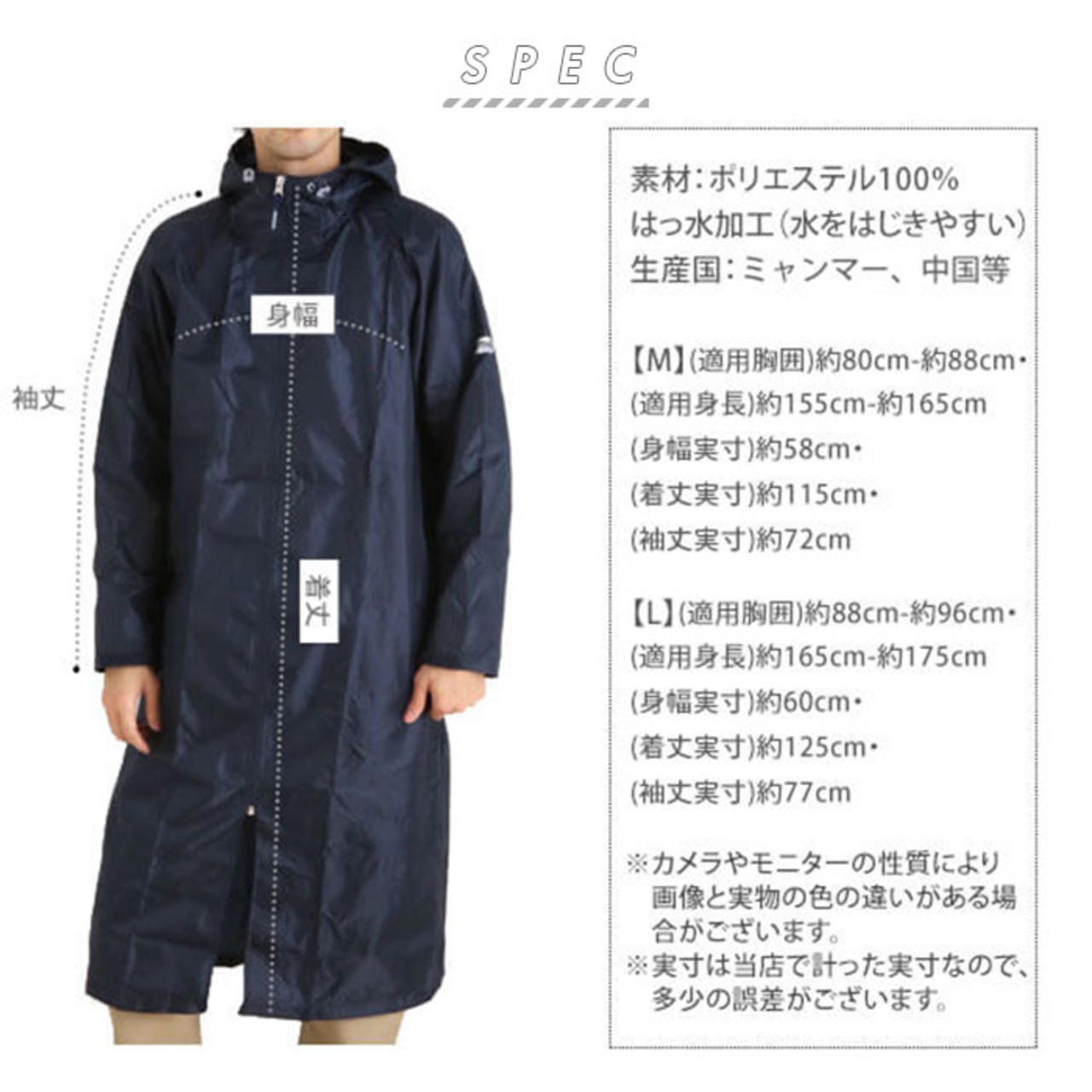 ・レインコート:ポリエステル100% ※はっ水(水をはじきやすい)