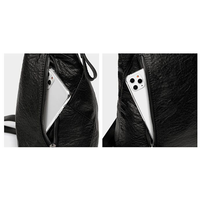 ・鍵やスマホなど、頻繁に使用する小物がすぐに取り出せる、便利なファスナーポケットを背面と側面にそれぞれ配置。