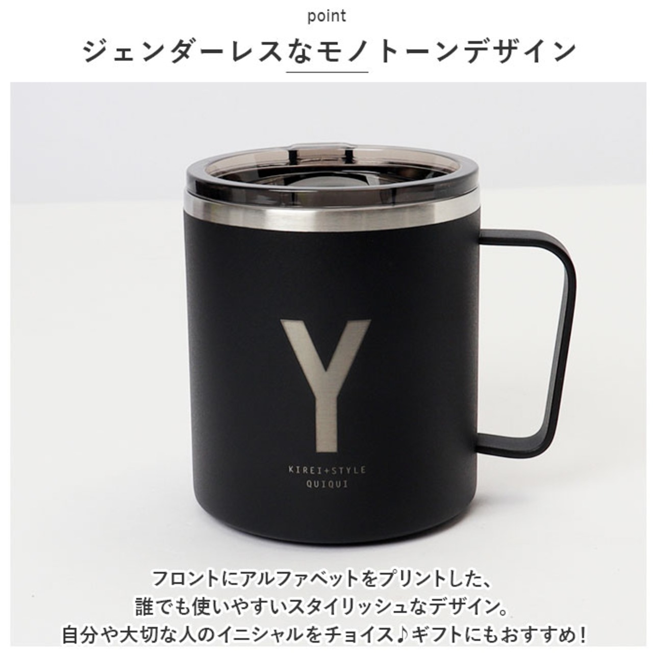 アルファベット フタ付ストレートマグ