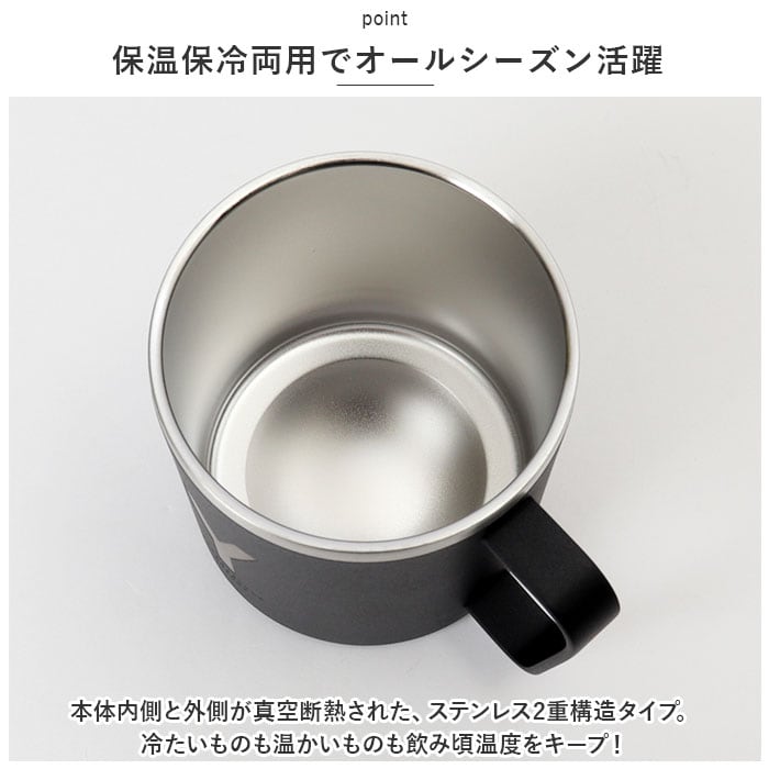 ・本体内側と外側が真空断熱された、ステンレス2重構造タイプ。冷たいものも温かいものも飲み頃温度をキープ!