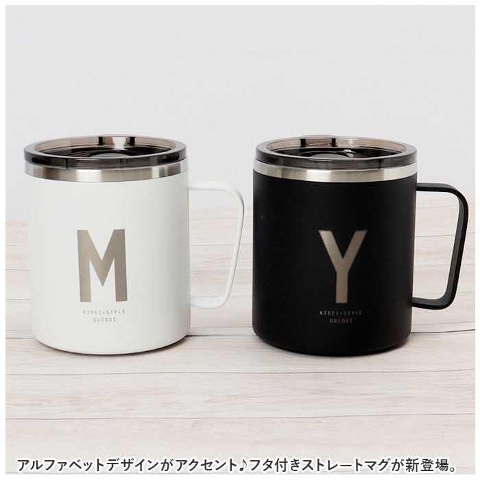 ・アルファベットデザインがアクセント♪フタ付きストレートマグが新登場。