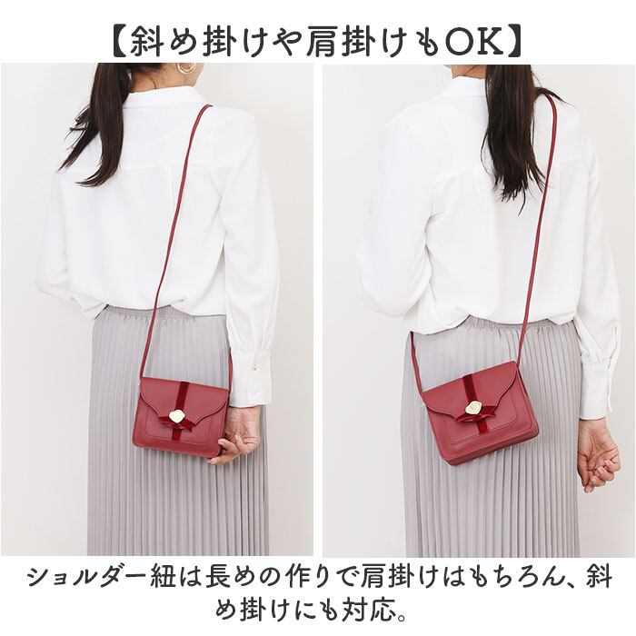 ・ショルダー紐は長めの作りで肩掛けはもちろん、斜め掛けにも対応。