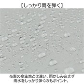 ・布製の傘生地とは違い、雨がしみ込まず雨水をしっかり弾くのもポイント。