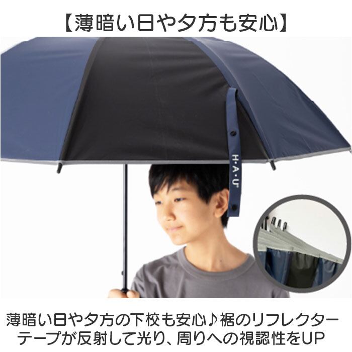 ・小学校低学年から長く使える親骨55cm仕様。ランドセルや大きなリュックもしっかりカバー