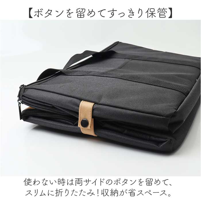・使わない時は両サイドのボタンを留めて、スリムに折りたたみ!収納が省スペース。