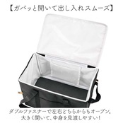 ・ダブルファスナーで左右どちらからもオープン。大きく開いて、中身を見渡しやすい!