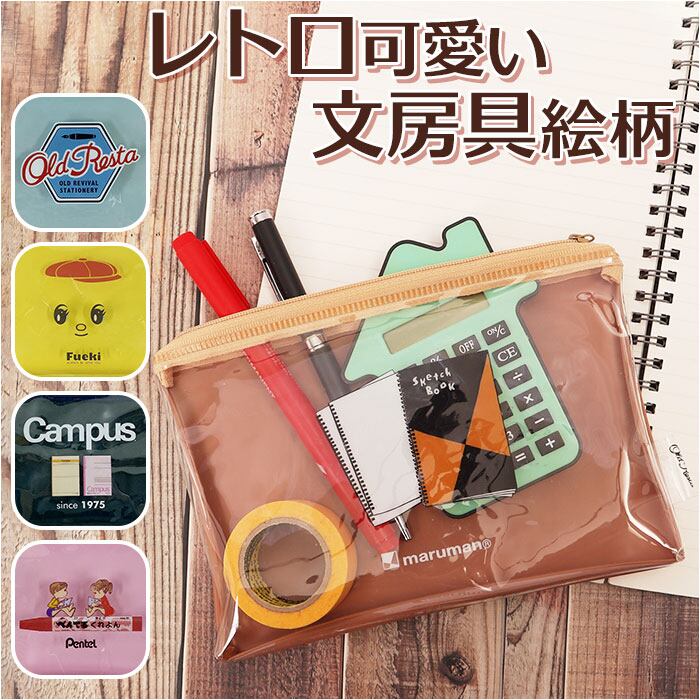 ・レトロな文房具がカタチを変えてリバイバル♪文具女子注目の「Old Resta クリアポーチ」が新登場。