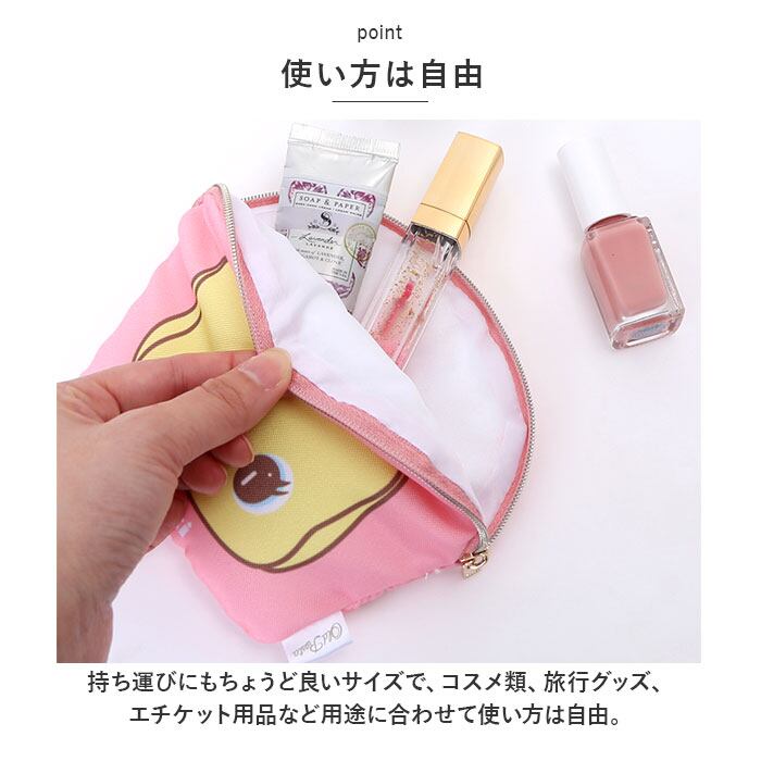 ・持ち運びにもちょうど良いサイズで、コスメ類、旅行グッズ、エチケット用品など用途に合わせて使い方は自由。
