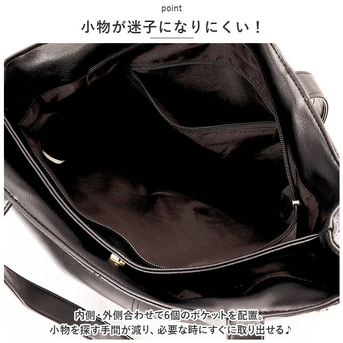 ・内側・外側合わせて6個のポケットを配置。小物を探す手間が減り、必要な時にすぐに取り出せる♪