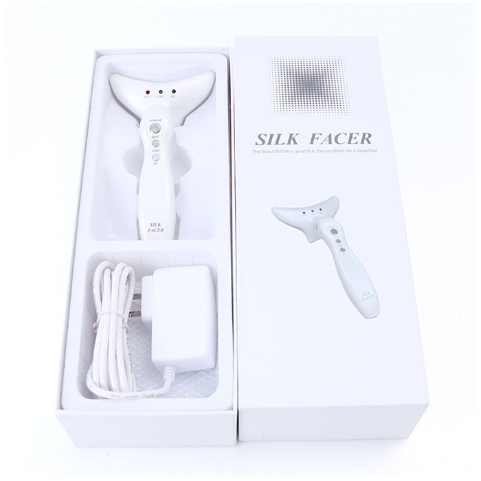 美顔器 ems 通販 ほうれい線アイロン シルクフェイサー フェイシャル フェイスマッサージ OM-FM04 顔 マッサージ器 温熱 首 ネックケア 女性 温感 RF 美容家電 ラジオ波 表情筋 アダプター フェイスケア 母の日 贈り物