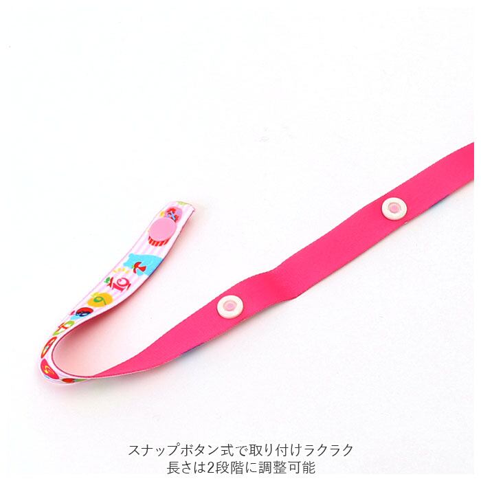 ・スナップボタン式で取り付けラクラク。長さは2段階に調整可能。