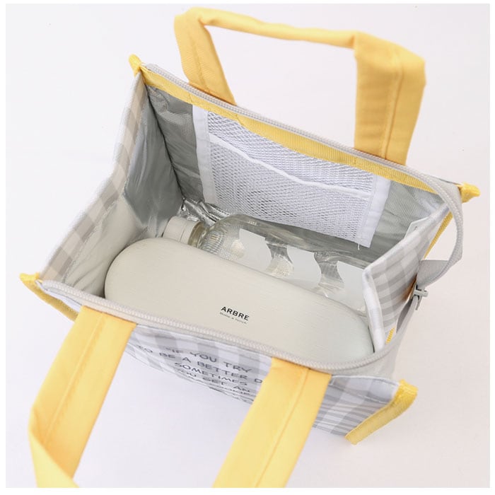 ・1人分のランチボックスを入れるのにぴったりなサイズ感。保冷剤を入れておけるメッシュポケットを装備。