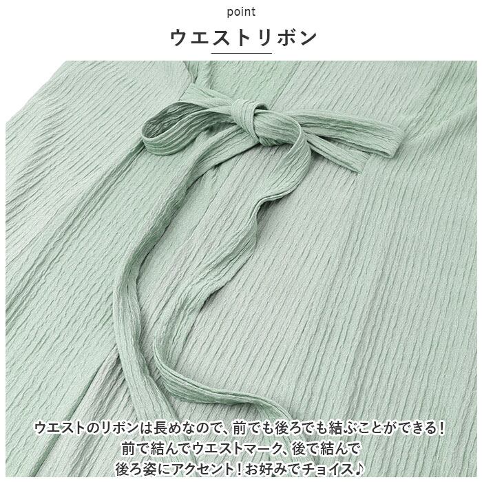 ・ウエストのリボンは長めなので、前でも後ろでも結ぶことができる!前で結んでウエストマーク、後で結んで後ろ姿にアクセント!お好みでチョイス♪