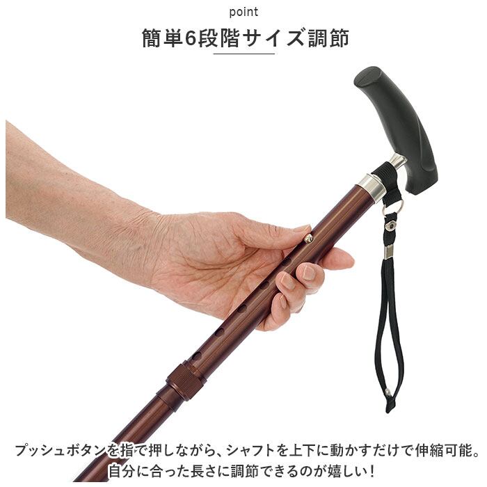 ・プッシュボタンを指で押しながら、シャフトを上下に動かすだけで伸縮可能。自分に合った長さに調節できるのが嬉しい!