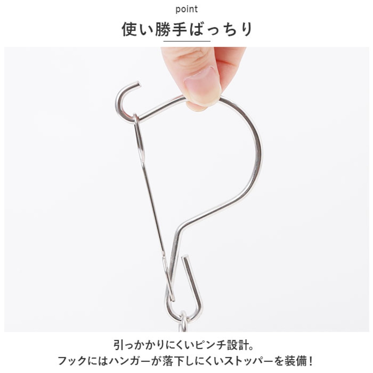 ・引っかかりにくいピンチ設計。フックにはハンガーが落下しにくいストッパーを装備!