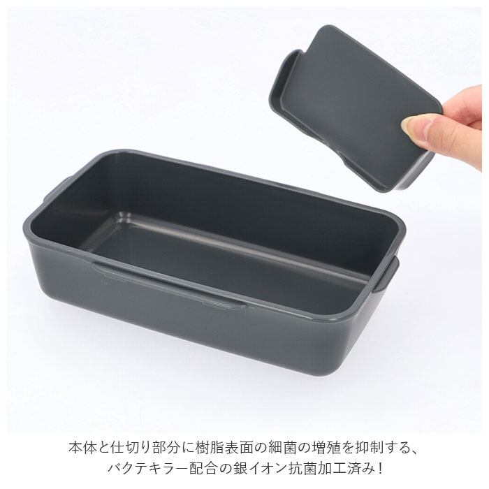 ・本体と仕切り部分に樹脂表面の細菌の増殖を抑制する、バクテキラー配合の銀イオン抗菌加工済み!