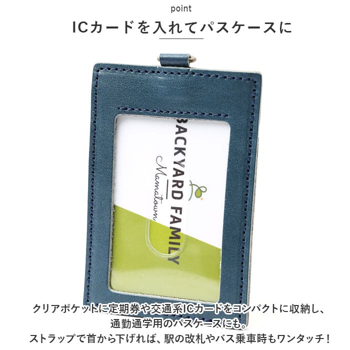 ・クリアポケットに定期券や交通系ICカードをコンパクトに収納し、通勤通学用のパスケースにも。ストラップで首から下げれば、駅の改札やバス乗車時もワンタッチ!