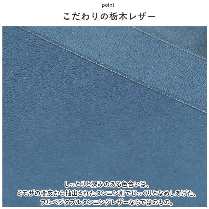 ・しっとりと深みのある色合いは、ミモザの樹皮から抽出されたタンニン剤でじっくりとなめしあげた、フルベジタブルタンニングレザーならではのもの。
