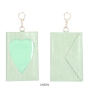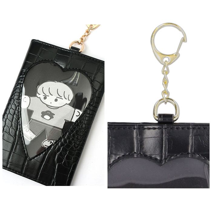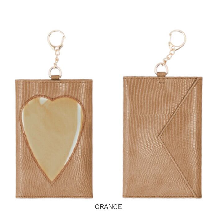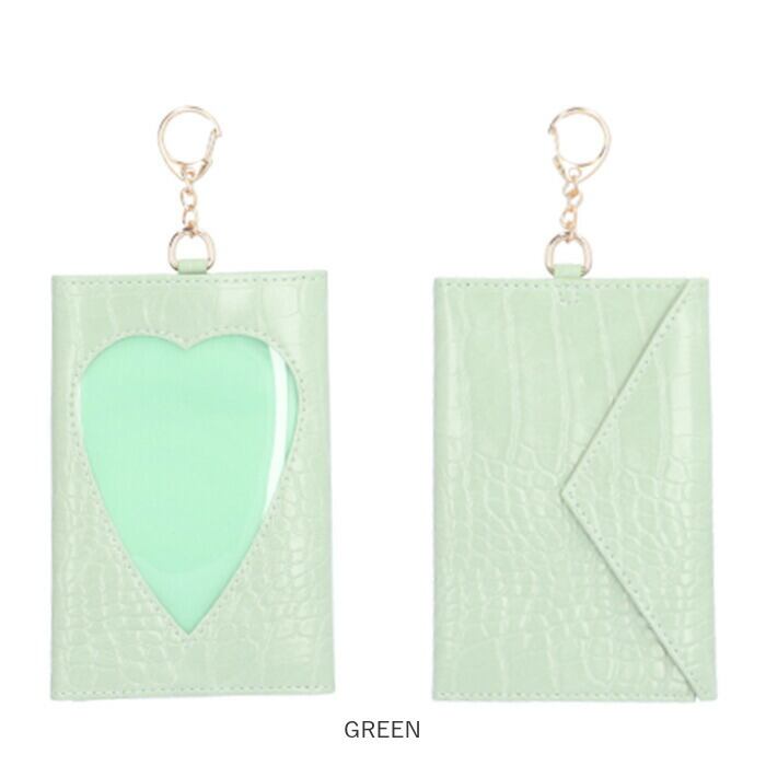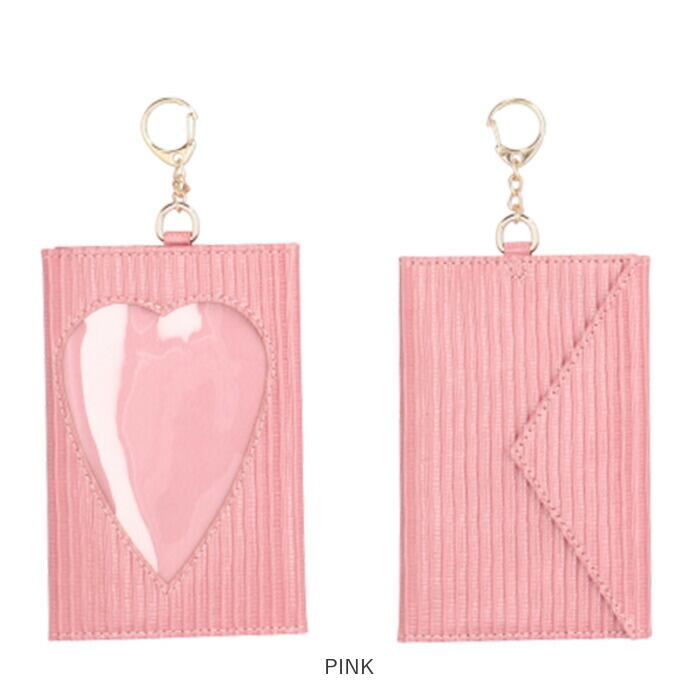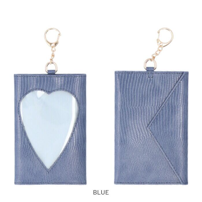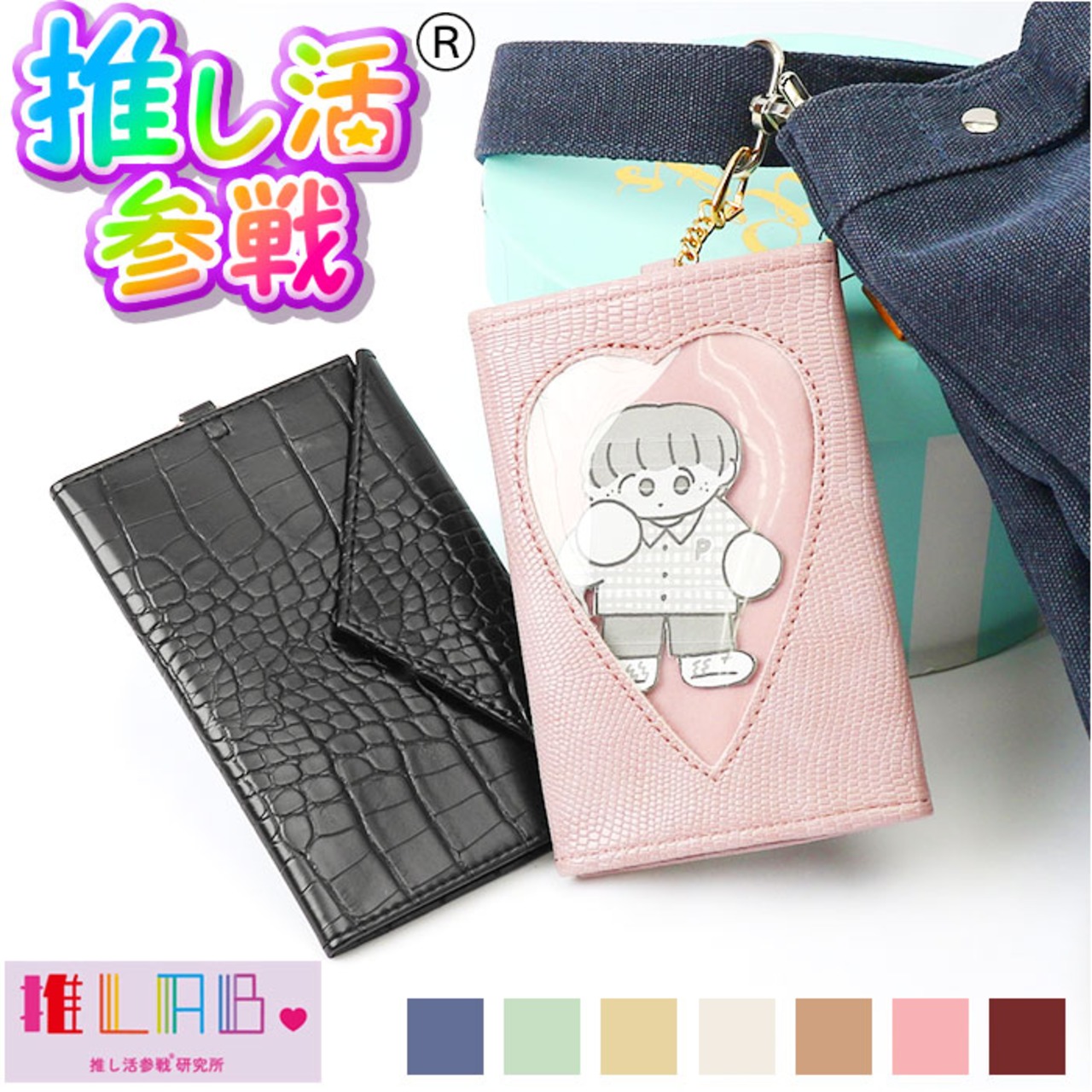 ・クロコ調の滑らかなフェイクレザー素材。ハート型のクリア窓付きで、推しグッズが映える♪裏面はレター型モチーフを取り入れ、個性が光る仕上がりに。