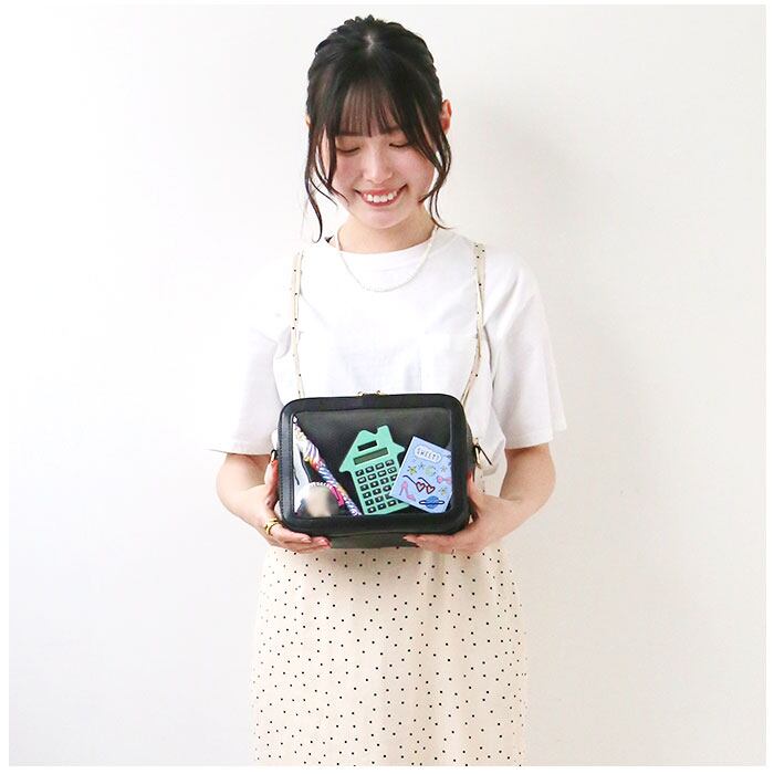・1面はデイリーに使える上品なデザイン。反対側の面は、推しグッズを魅せるクリア仕様!推し活の移動時に周りの目が気になる…という方におすすめ。(※クリア面はダブルファスナーポケット仕様です。)