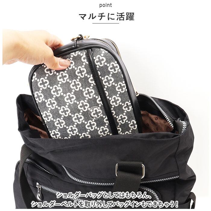 ・ショルダーバッグとしてはもちろん、ショルダーベルトを取り外してバッグインもできちゃう!