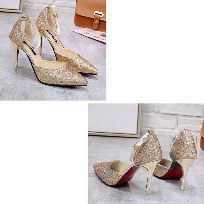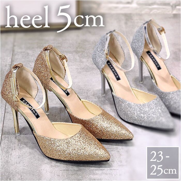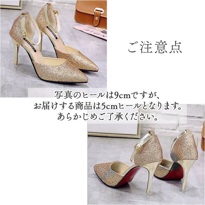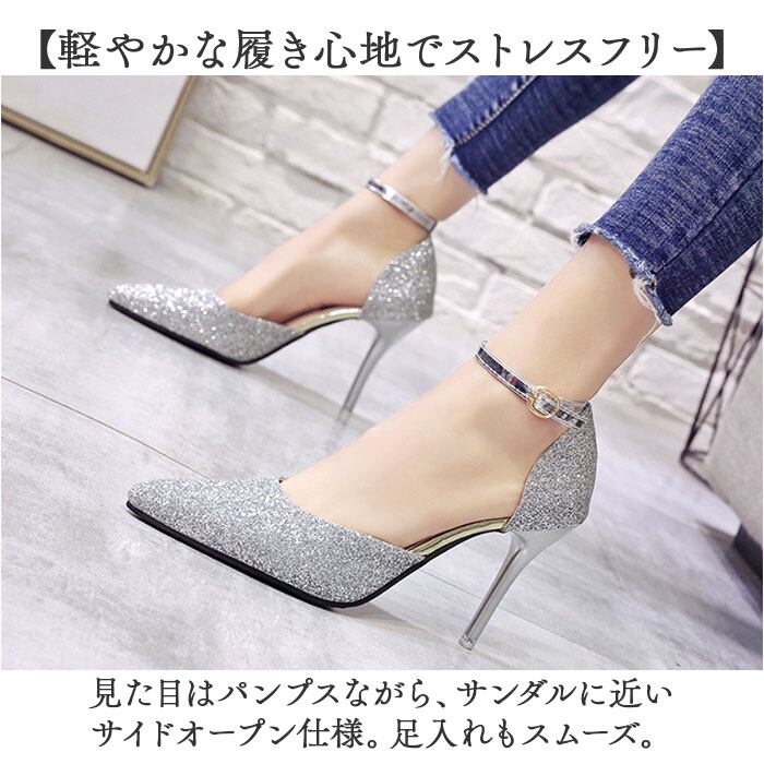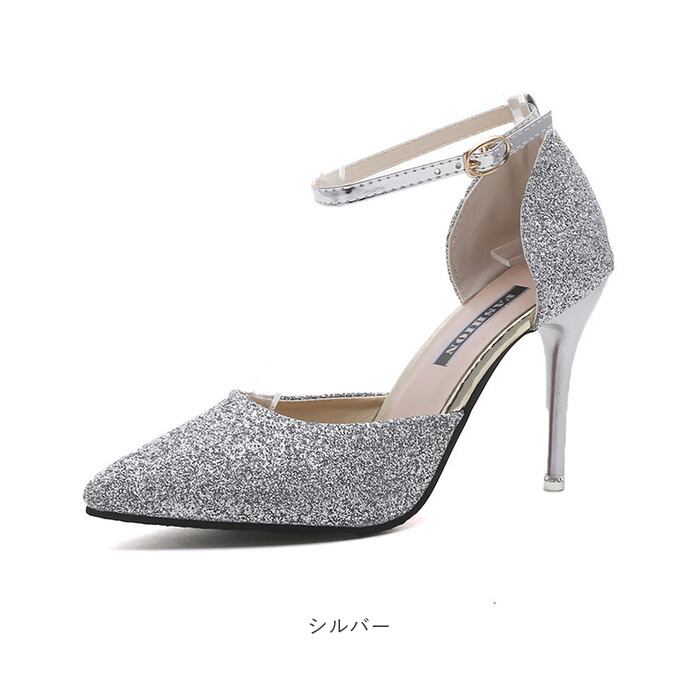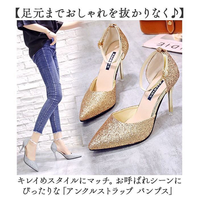 アンクルストラップ 結婚式 パンプス キラキラ ラメ 美脚