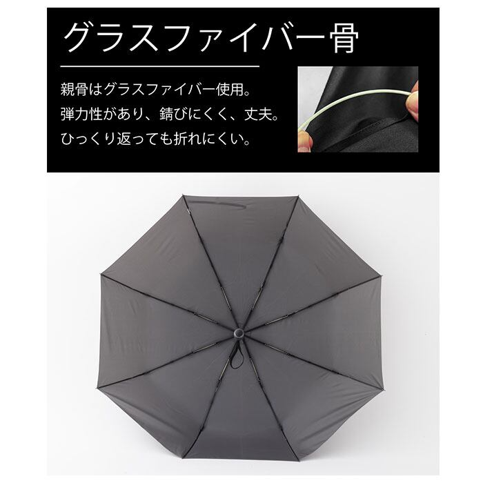 ・親骨の一部は強度と柔軟性に優れた素材。8本骨仕様&強風や突風に煽られても折れにくい◎