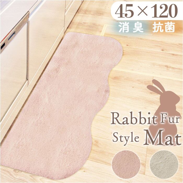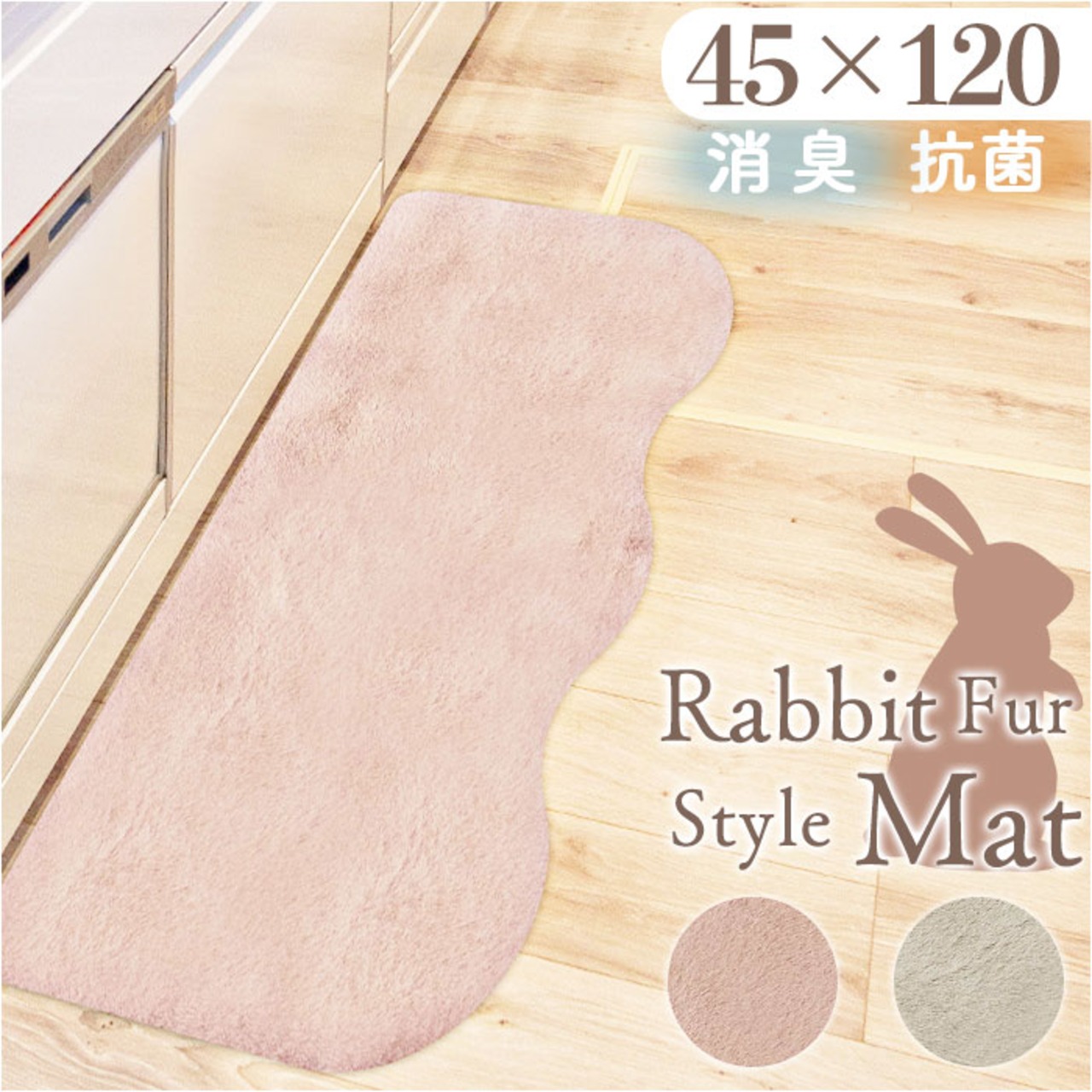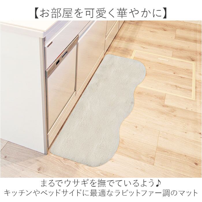 ・まるでウサギを撫でているよう♪キッチンやベッドサイドに最適なラビットファー調のマット