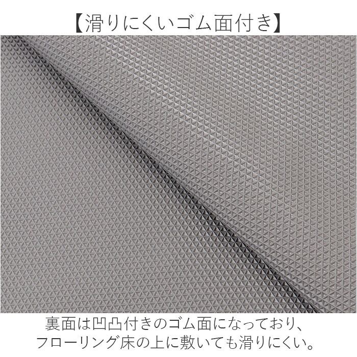 ・裏面は凹凸付きのゴム面になっており、フローリング床の上に敷いても滑りにくい。