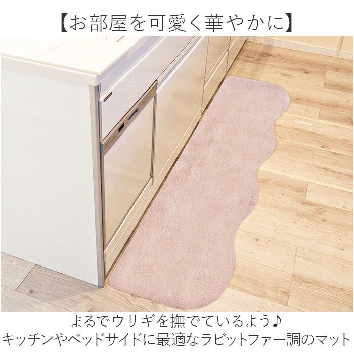 ・まるでウサギを撫でているよう♪キッチンやベッドサイドに最適なラビットファー調のマット