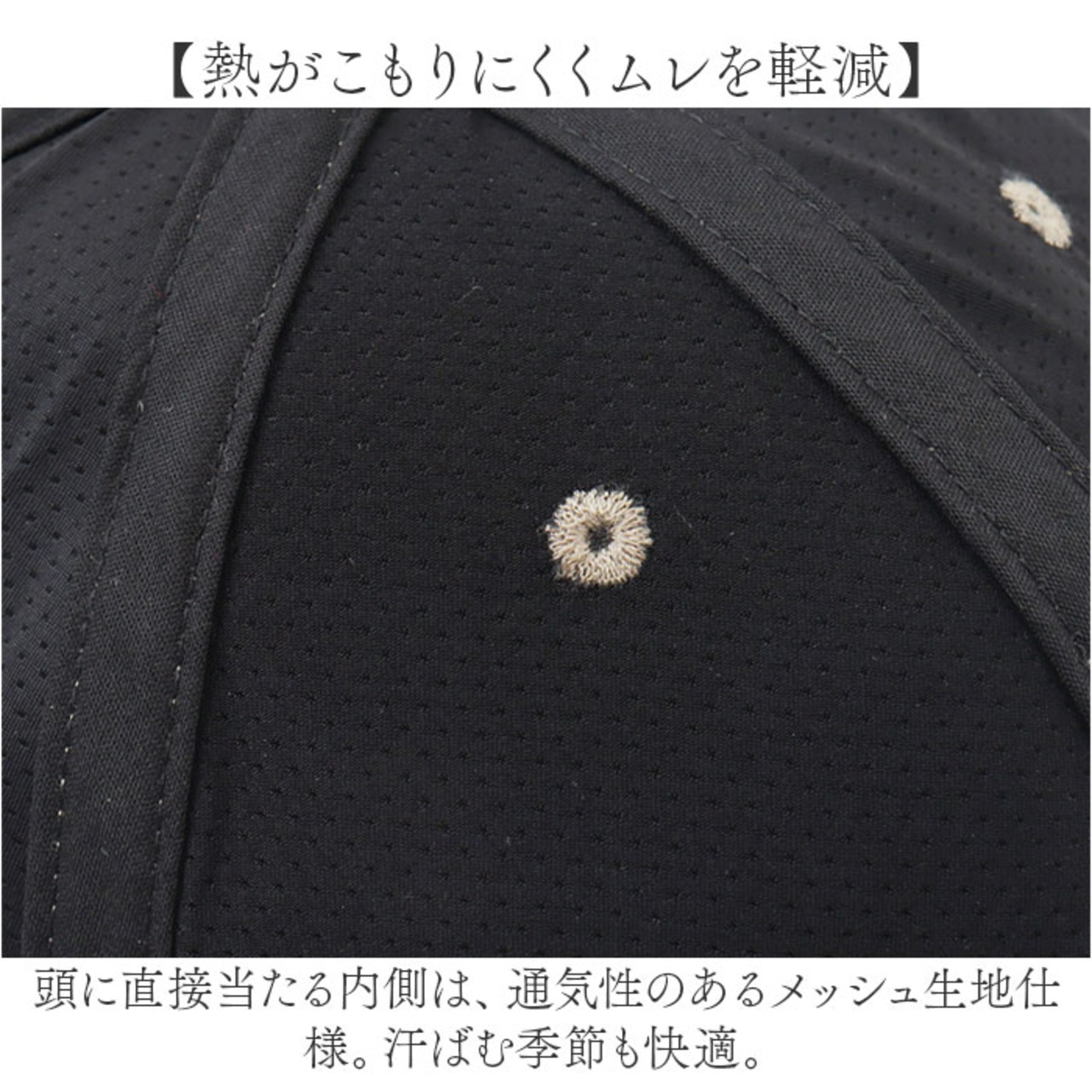 ・頭に直接当たる内側は、通気性のあるメッシュ生地仕様。汗ばむ季節も快適。