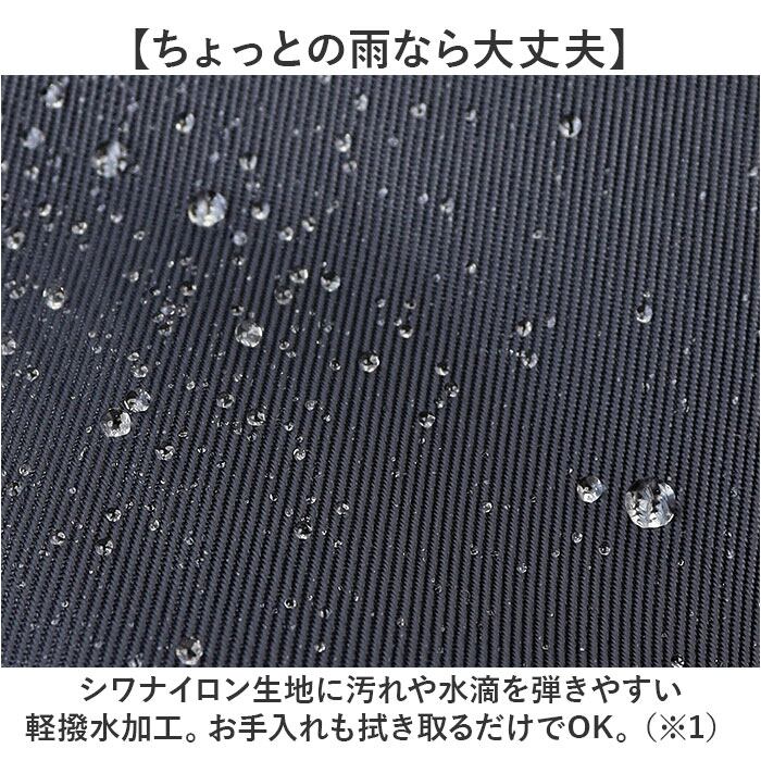 ・シワナイロン生地に汚れや水滴を弾きやすい軽撥水加工。お手入れも拭き取るだけでOK。
