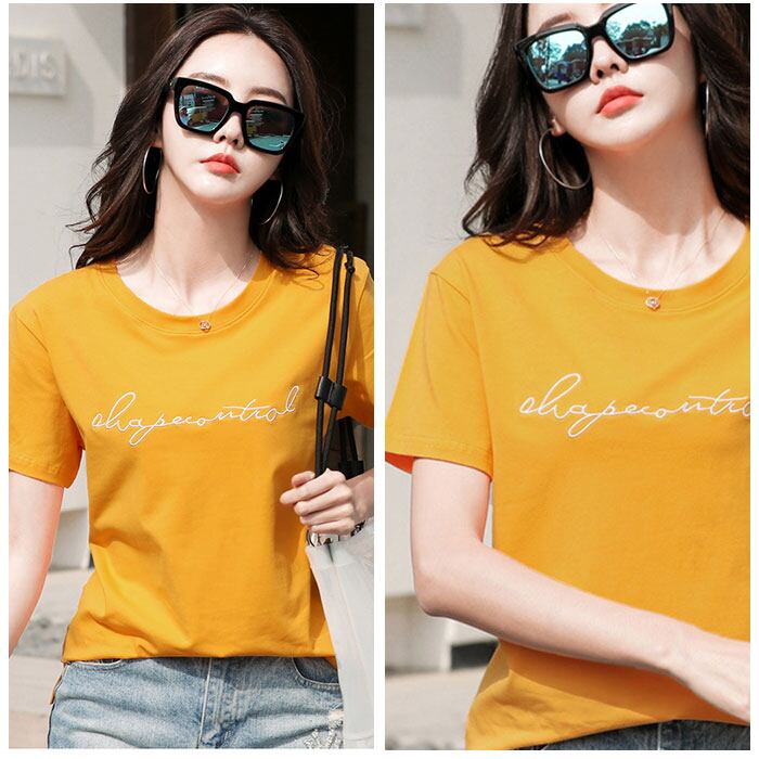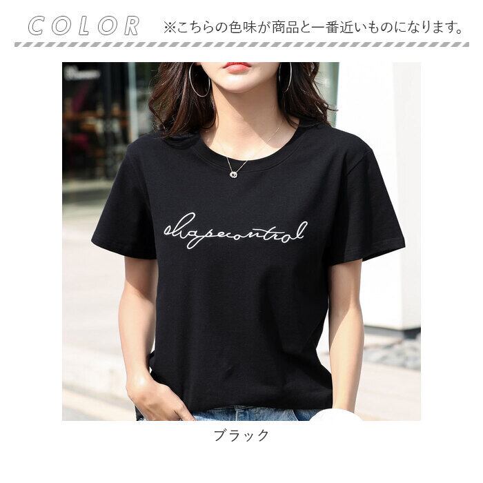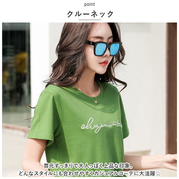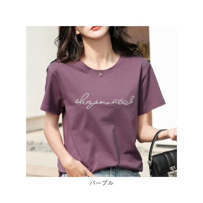 Tシャツ レディース クルーネック 刺繍 半袖 oudgzr263